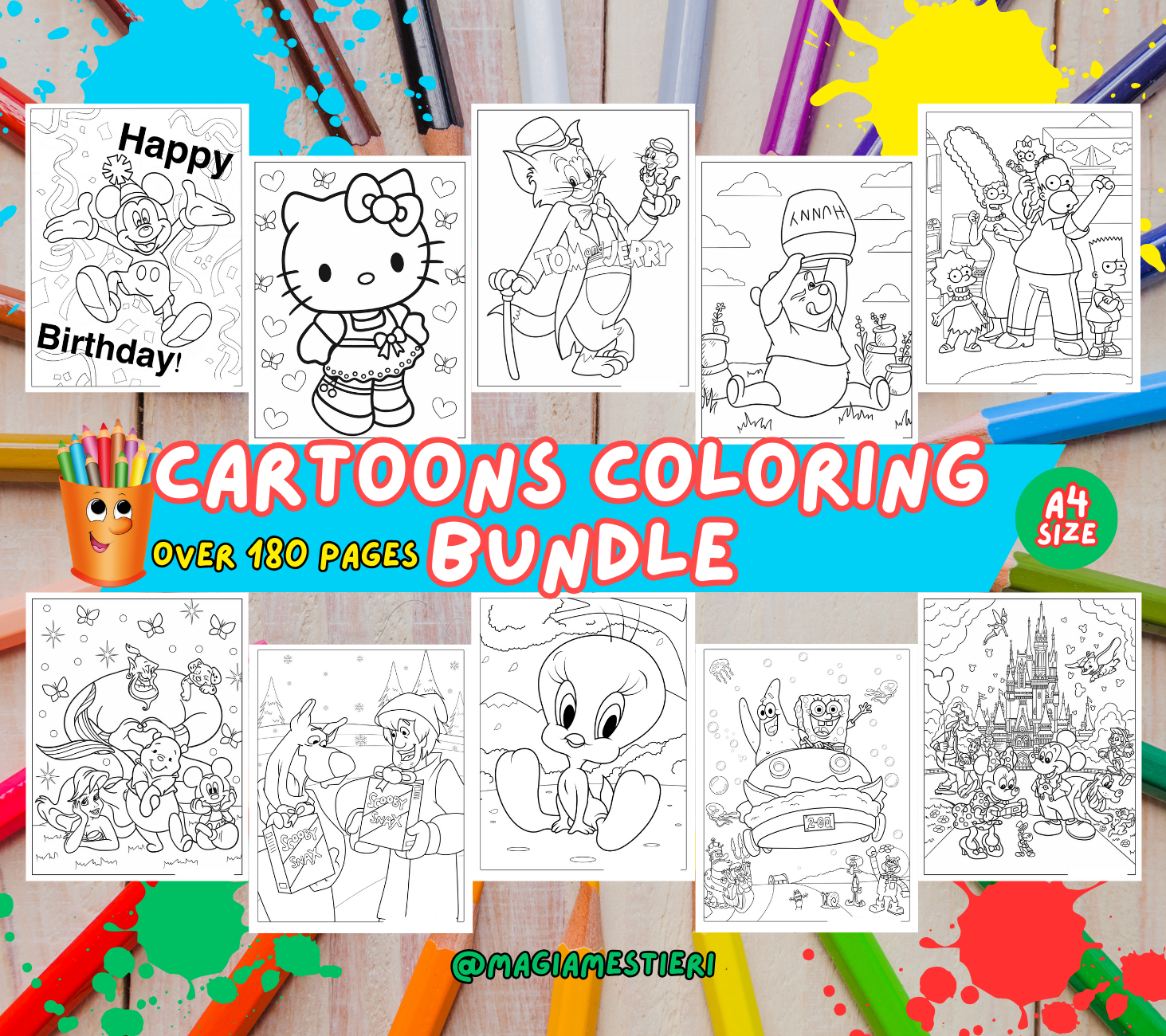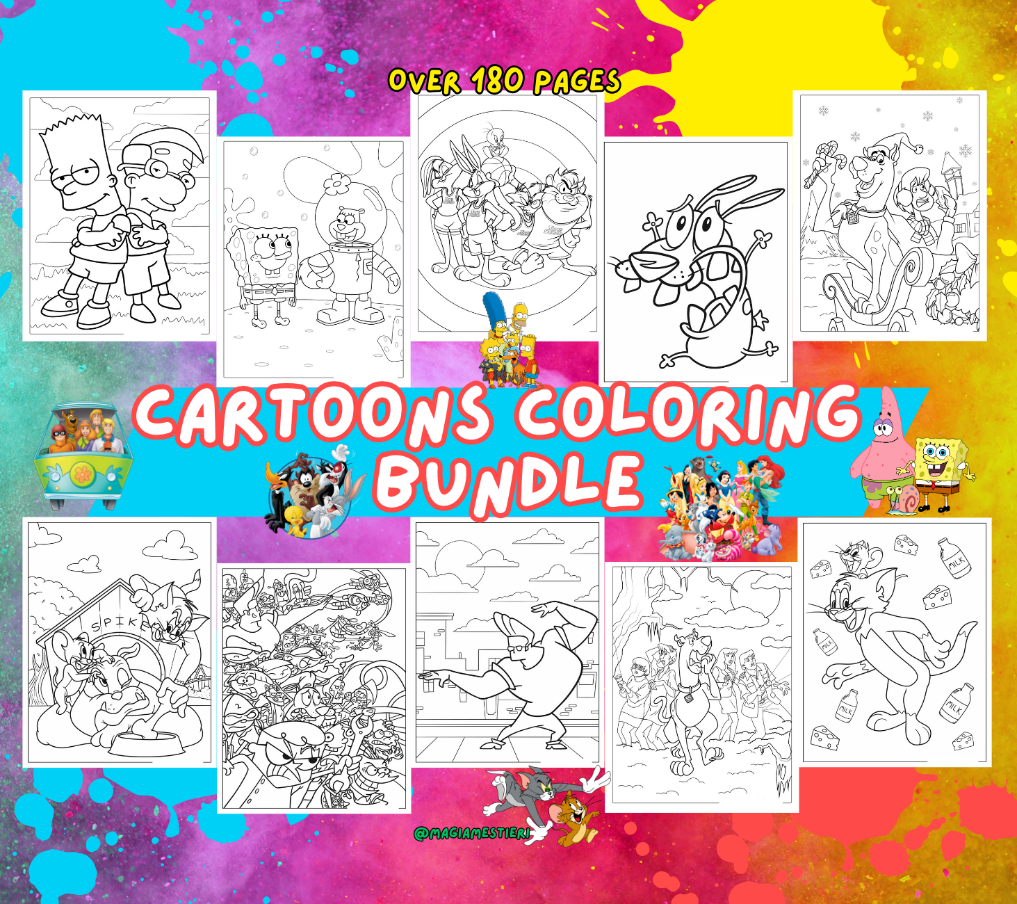 180 animated Cartoon coloring pages for any age. This cute set of coloring pages is a great activity for anyone. You may print them as many times as you want.