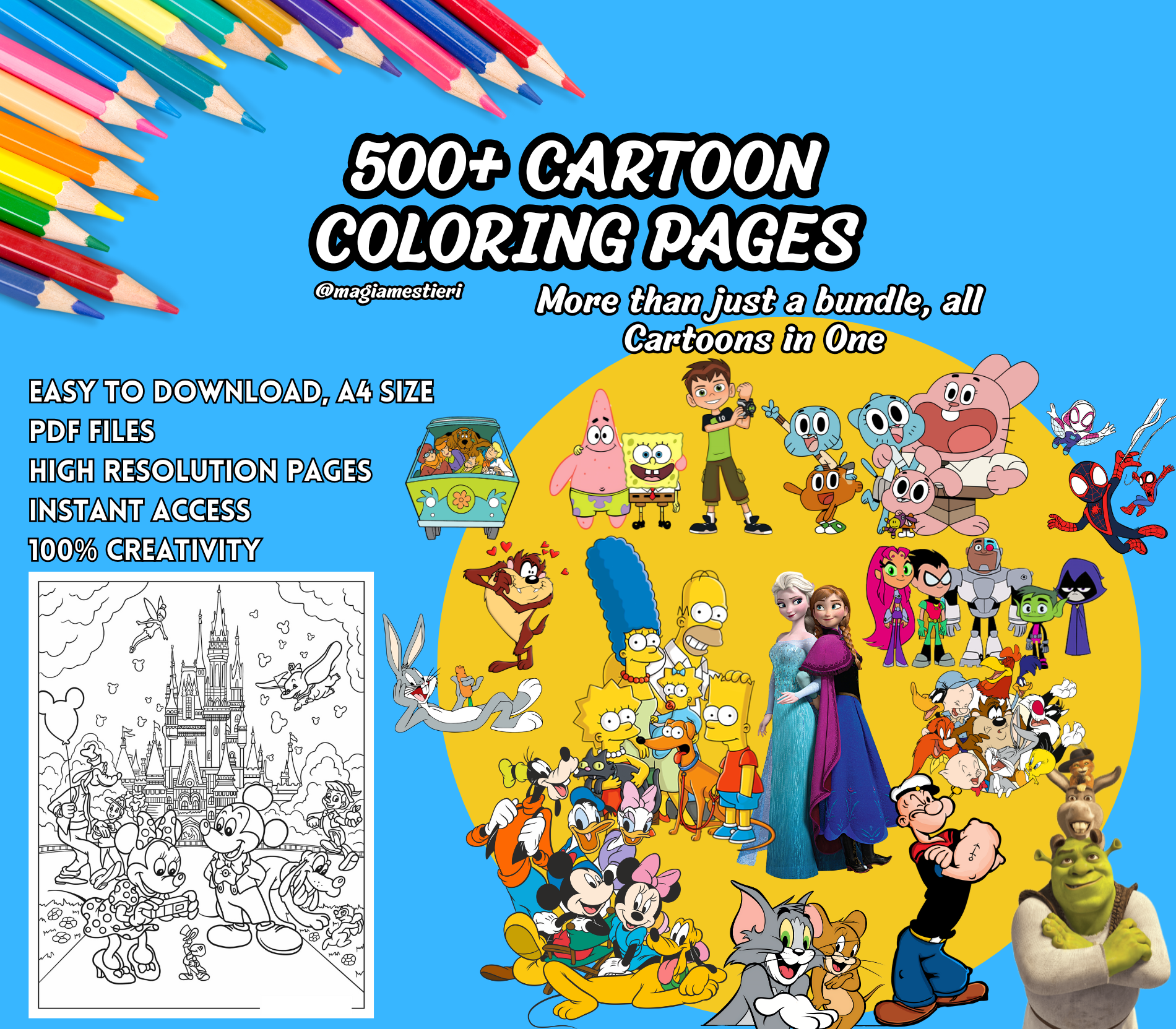 500 coloring pages for any age. This cute set of coloring pages is a great activity for anyone. You may print them as many times as you want. Coloring pages from multiple movies and series.
