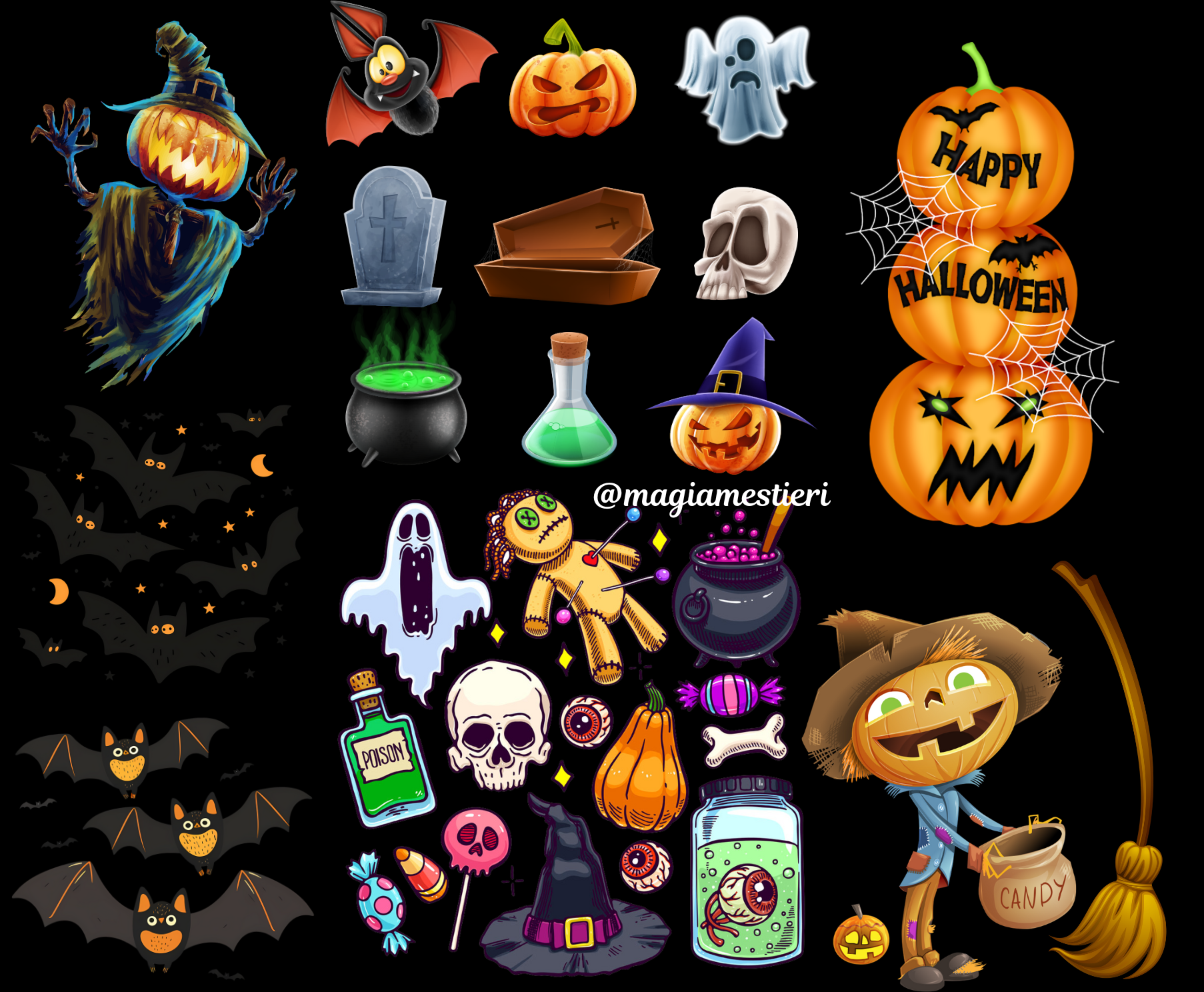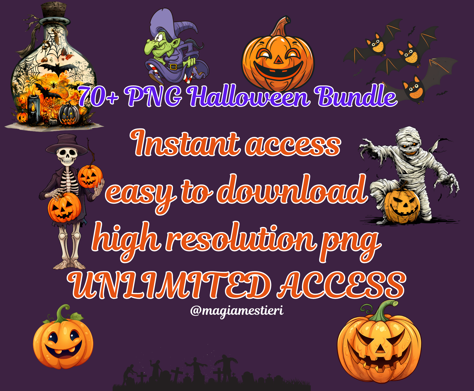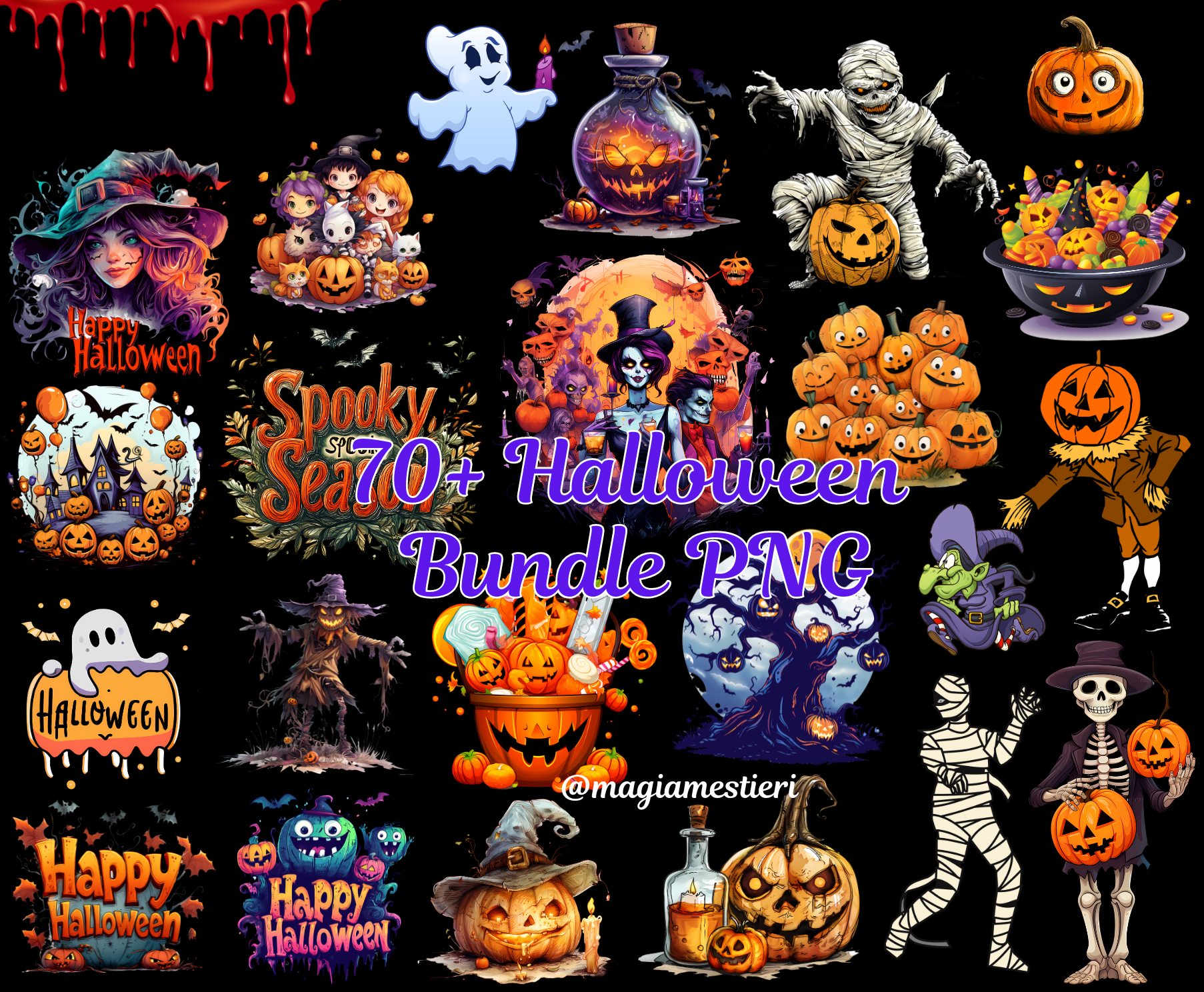 Halloween PNG Bundle, 70+ Clipart, Digital Art, Spooky Halloween PNG, Vector, High Resolution PNG