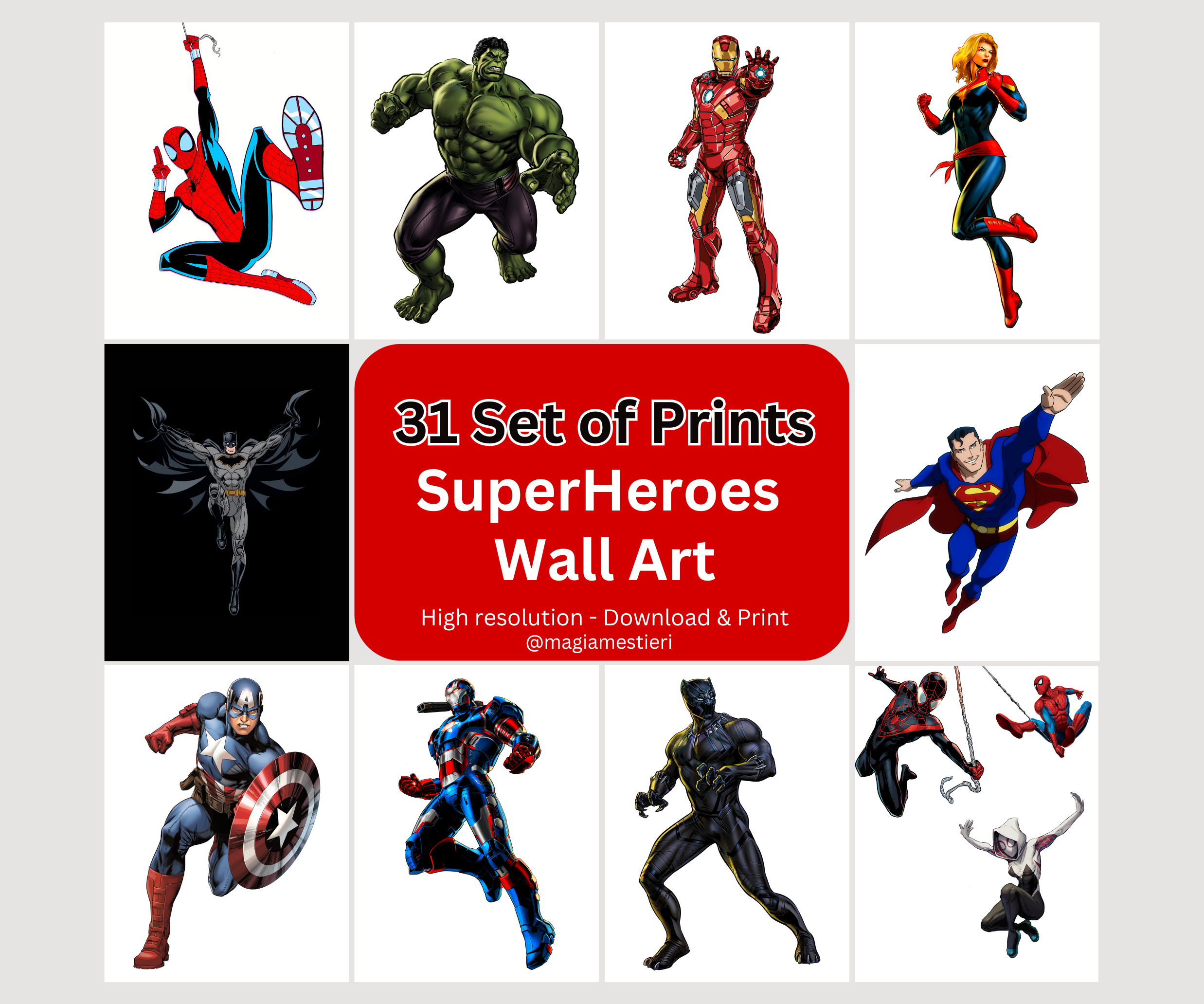 These superhero prints transformed my son’s room! The art is vibrant and high quality even when printed large. I printed at 24×36 inches and the image was still crisp. Excellent quality.