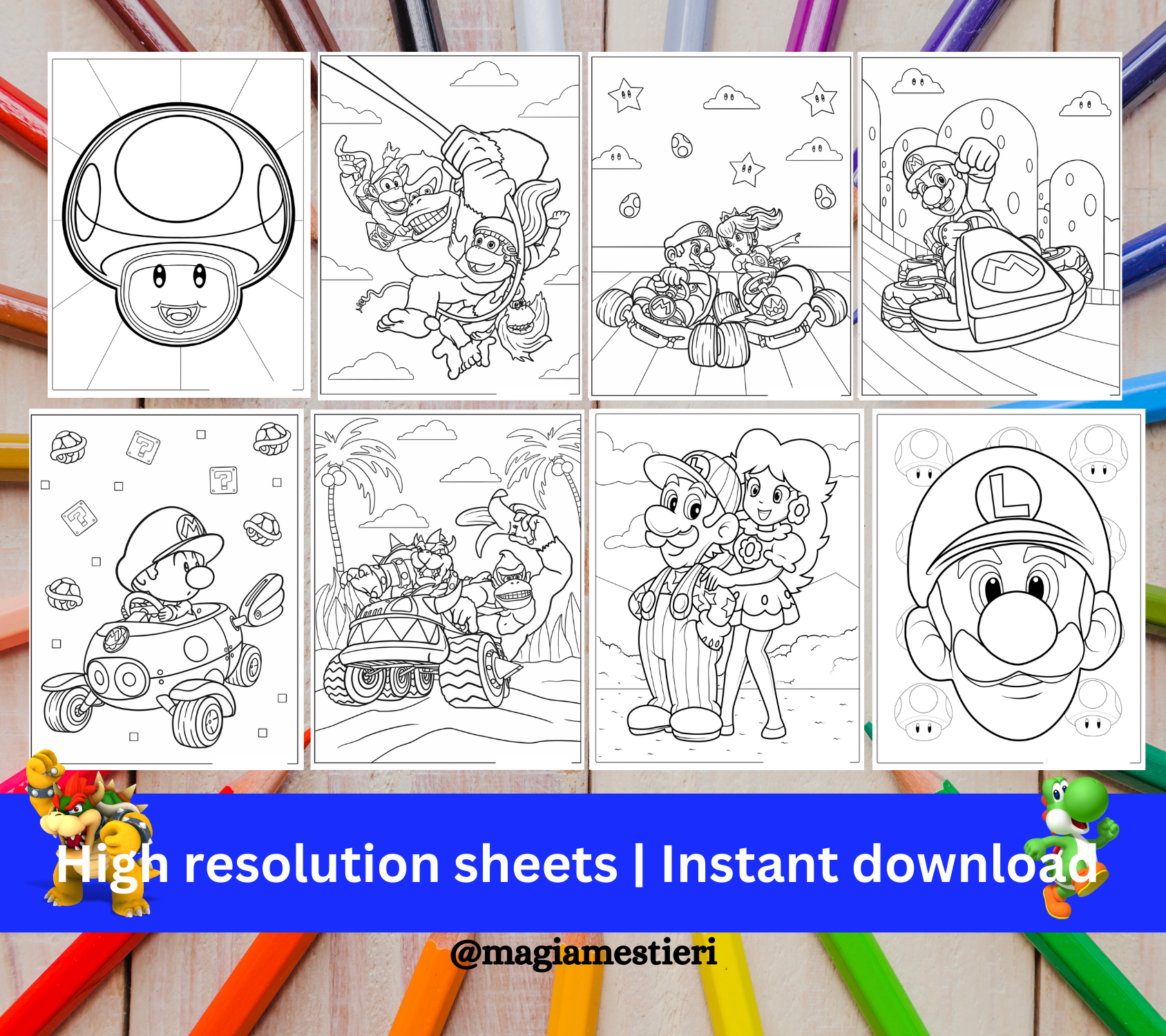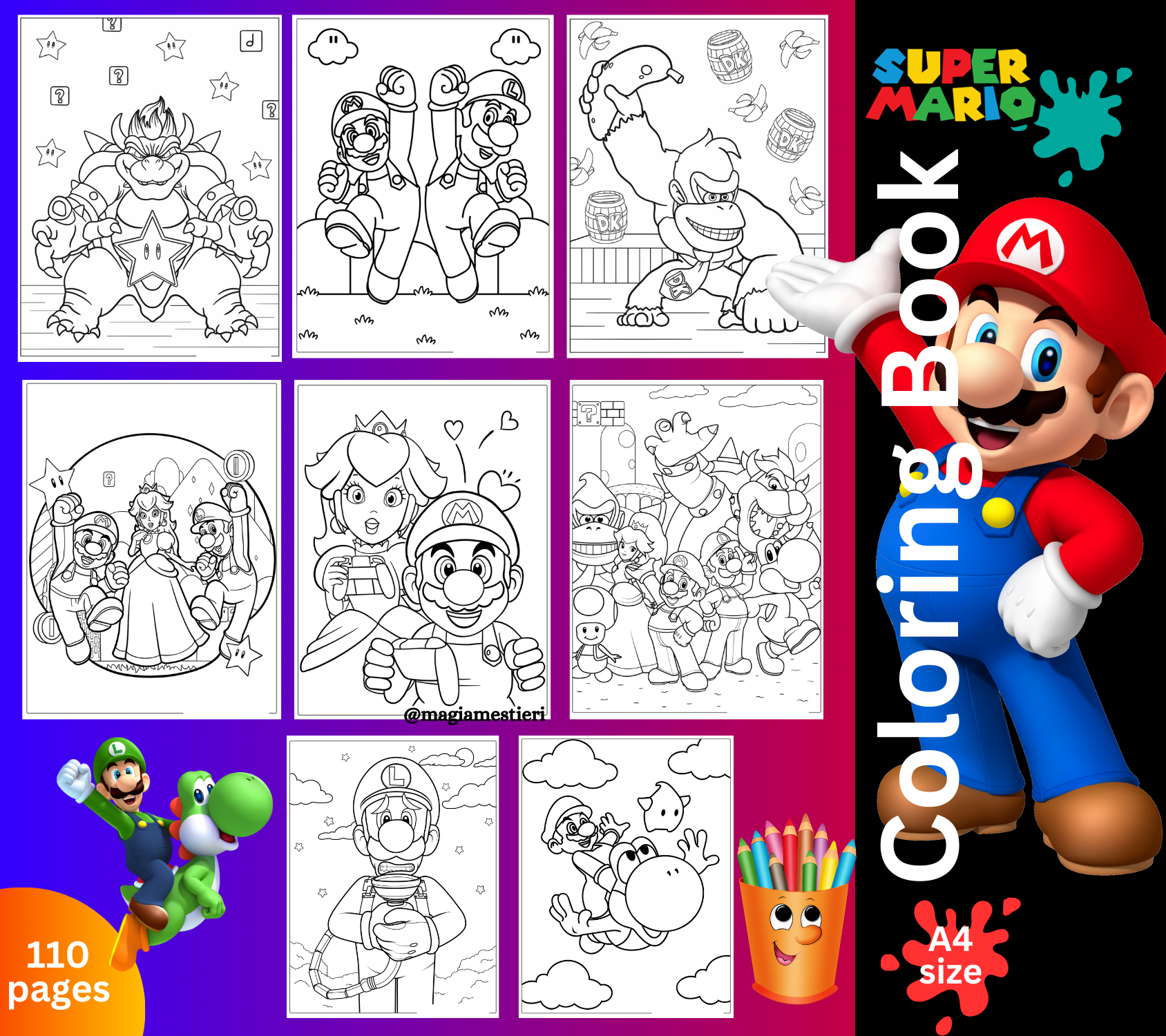 110 SUPER MARIO coloring pages for any age. This cute set of coloring pages is a great activity for anyone. You may print them as many times as you want.